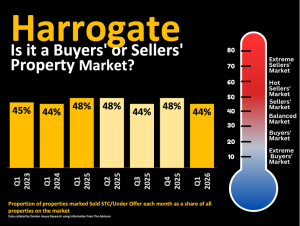 Understanding whether the current property market favours buyers or sellers is key to making the right call. If you follow my regular Harrogate property market updates, you will know one of the most dependable ways to assess the property market is by observing the percentage of homes marked as “Sold STC” or “Under Offer” compared to the total number of properties on the market.