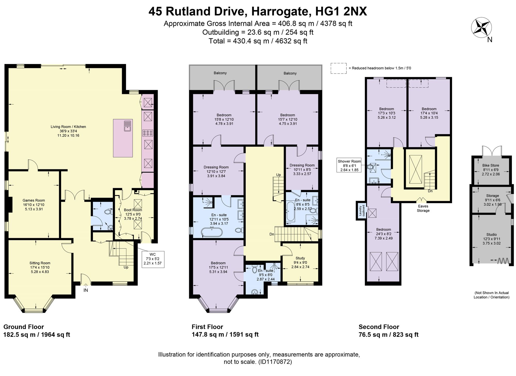 The first floor features a spacious and light-filled landing leading to three generous double bedrooms. Two luxurious principal suites benefit from dressing rooms, high-quality en-suite bathrooms and French doors opening onto twin balconies overlooking the rear garden. A third double bedroom includes an en-suite shower room and bay window to the front, and a separate home office/study provides an ideal workspace for modern lifestyles.