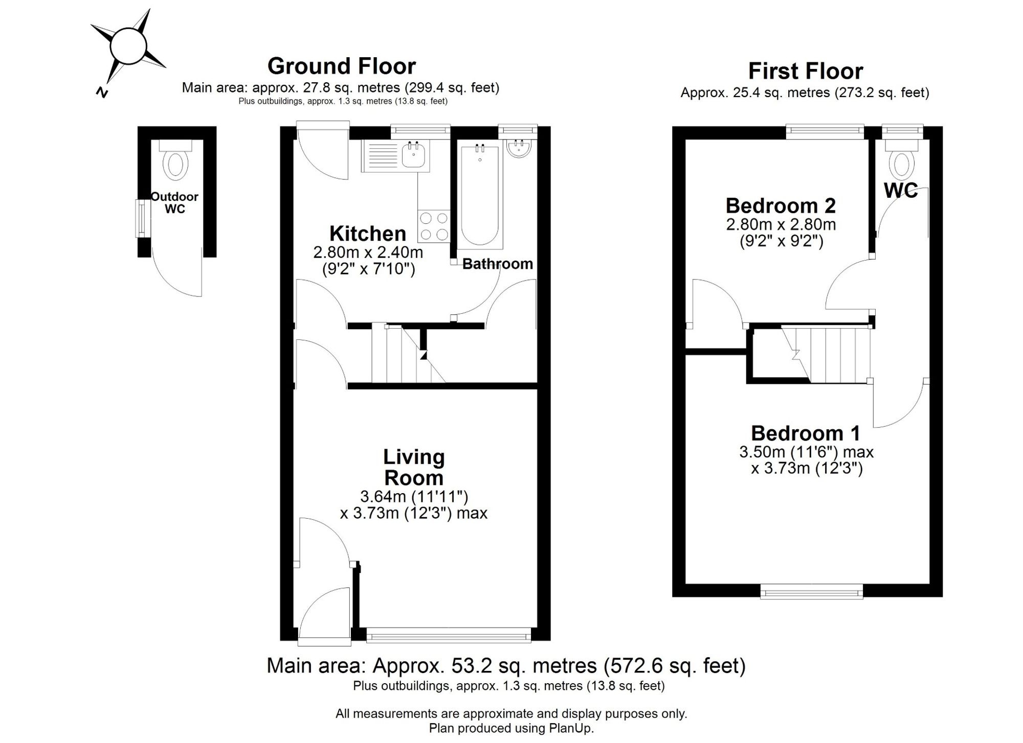 To the first floor are two well-proportioned double bedrooms, served by an upstairs WC. The smaller bedroom further benefits from a built-in storage wardrobe.