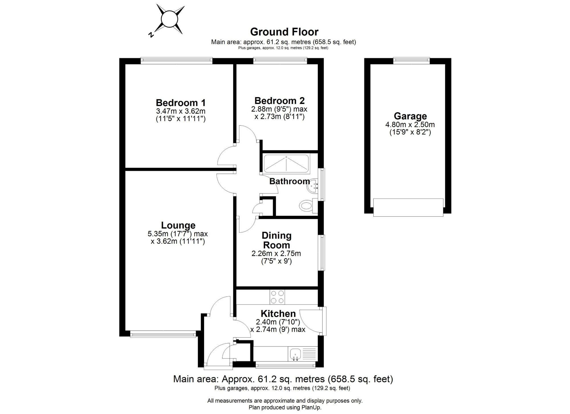 Internally, the bungalow opens into a porch with a handy storage cupboard. To the front, a modern kitchen offers side access to the garden, while the spacious lounge, positioned to the left, features a large front-facing window and a electric fire with coal effect. Beyond the lounge, a bright dining room provides a versatile family space. Two well-proportioned double bedrooms to the rear enjoy views over the garden, and the accommodation is completed by a contemporary family bathroom with a walk-in shower.