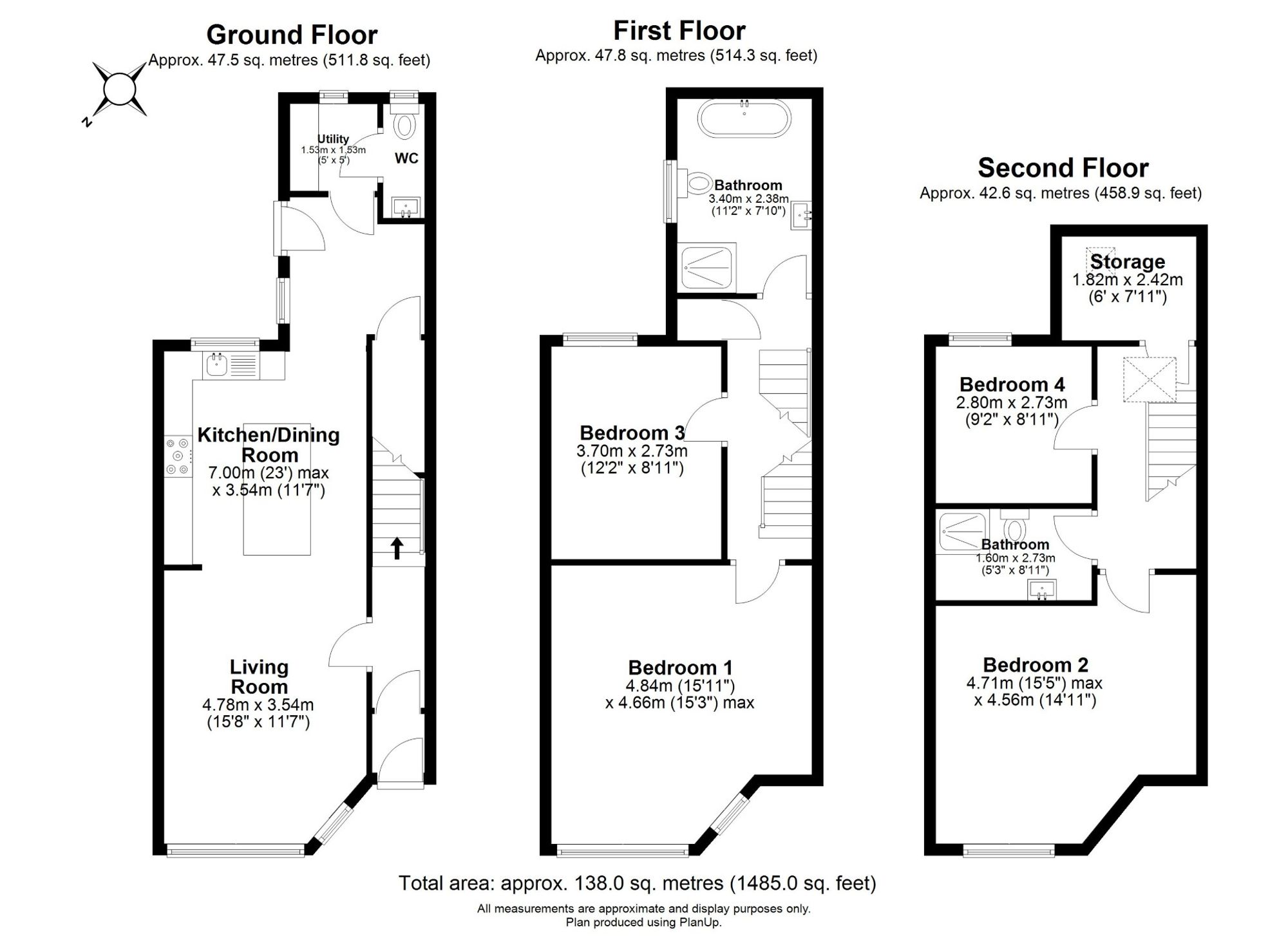 To the first floor are two generous double bedrooms alongside a stunning house bathroom, finished with eye-catching Terrazzo tiles, a free standing bath, separate shower, wash hand basin and WC. The upper floor provides two further bedrooms, a second shower room and useful storage space, making the layout ideal for families, professionals or those requiring home working space.