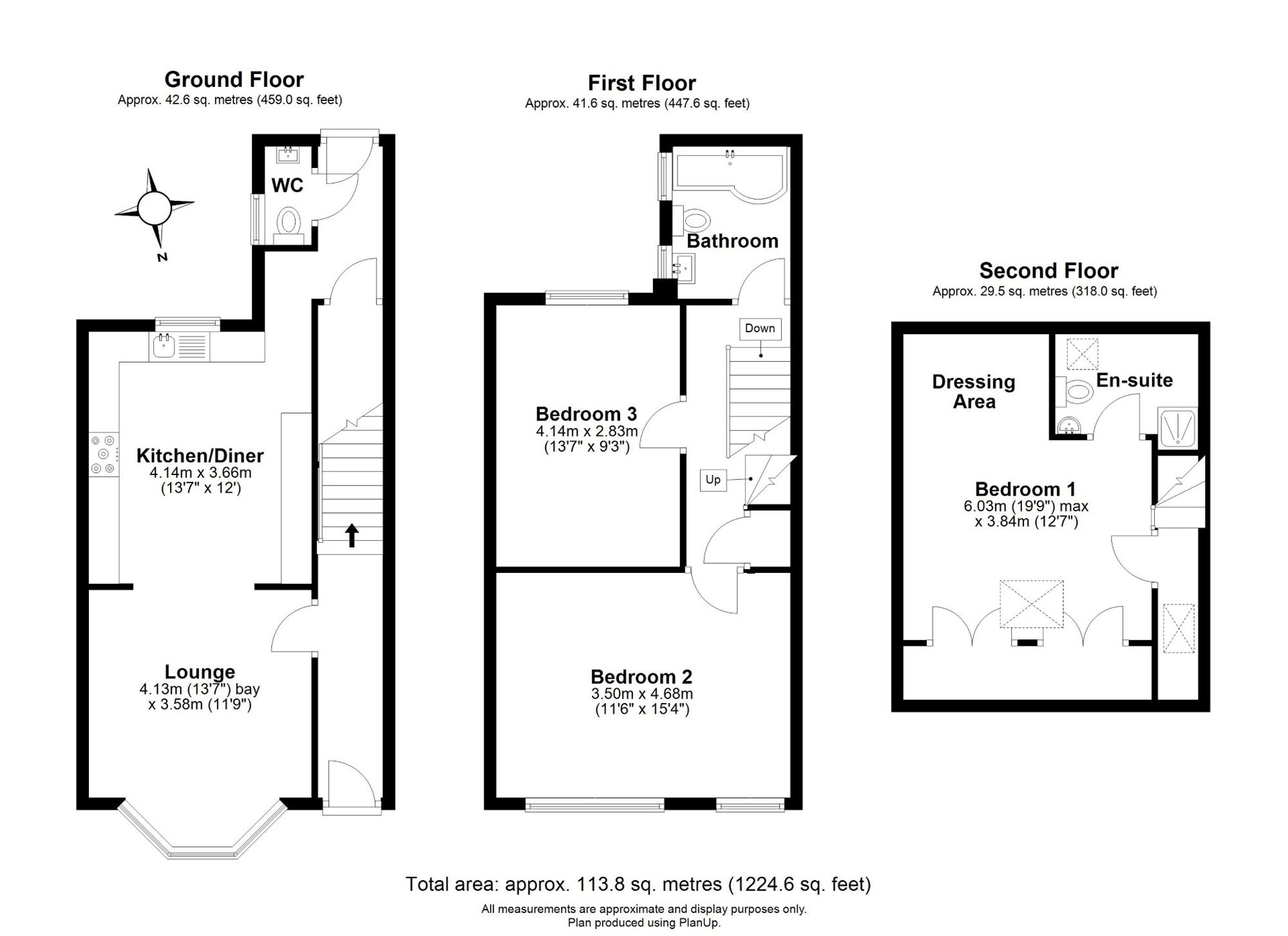 The first floor offers two generously sized bedrooms along with a modern house bathroom, finished to a high standard. Occupying the entire second floor is the impressive principal suite, featuring a private dressing area and a contemporary en-suite shower room, creating a peaceful and private retreat within the home.