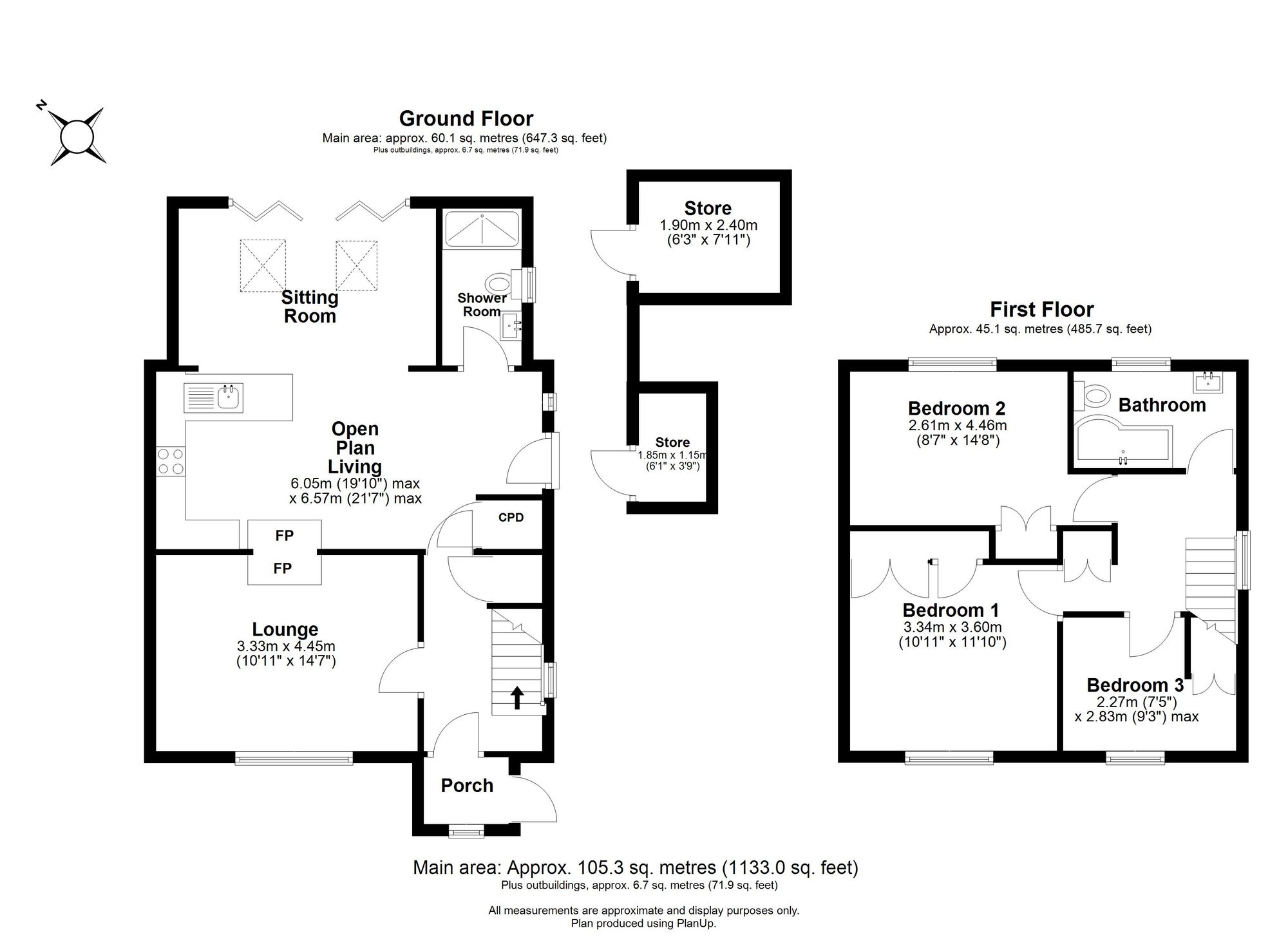 Upstairs, there are two well-proportioned double bedrooms, both with built-in wardrobes, alongside a good-sized single bedroom. These are served by a contemporary house bathroom, finished with modern tiling and an over-bath shower.