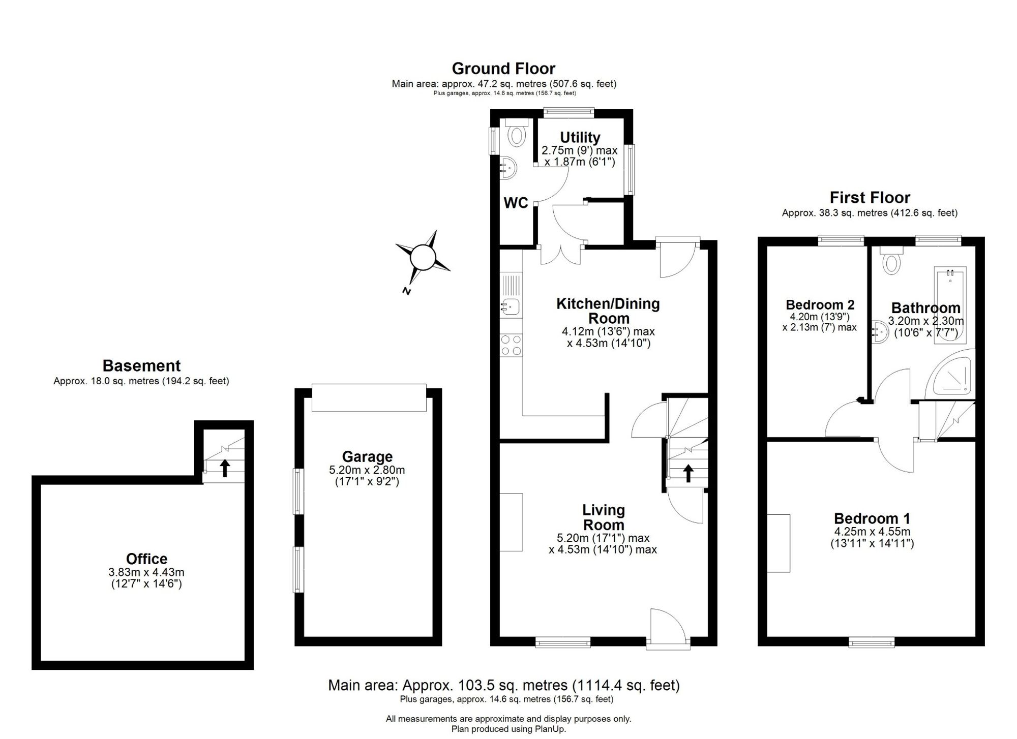 The accommodation opens into a well-appointed kitchen/diner fitted with modern cabinetry, ample worktop space, and an integrated oven and hob. This leads through to a useful utility room with additional storage and a convenient downstairs WC. To the rear of the ground floor is a spacious living room, showcasing attractive wooden flooring, high ceilings, and a characterful fireplace, along with a door providing access to the rear elevation.