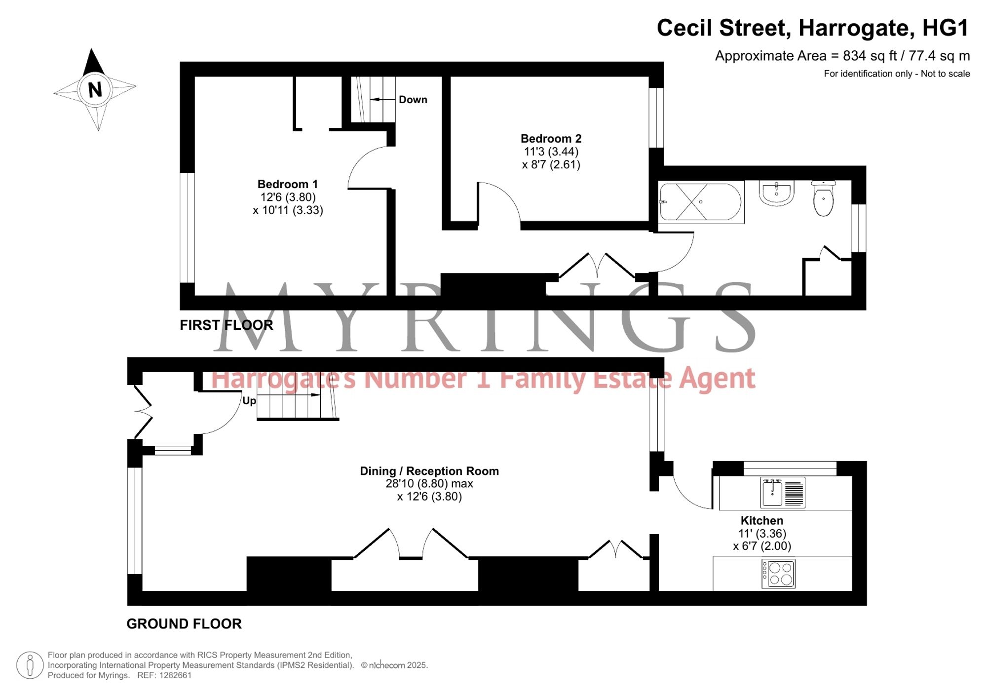 With over 800 square feet of well-planned accommodation, the property features a generous front living/dining area—ideal for family life and entertaining, with ample space for a dining table. To the rear, a bright and airy kitchen enjoys direct access to the garden and is fitted with a range of units, along with space for essential appliances.