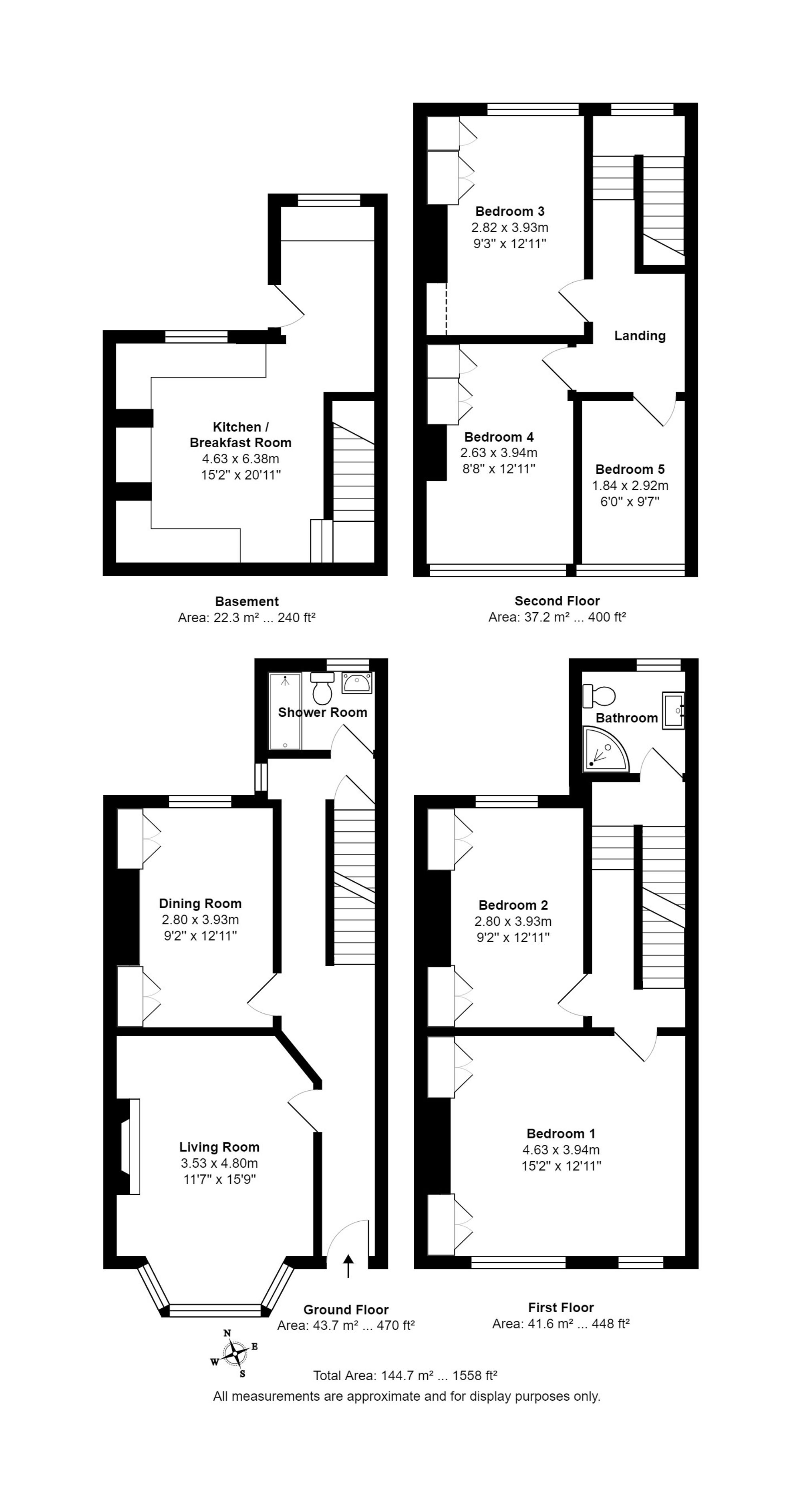 The first floor offers two double bedrooms, each with fitted wardrobes, along with a shower room and separate WC. On the second floor there are three further bedrooms, two of which would work perfectly as home offices or guest rooms. A built-in wardrobe on the landing provides extra storage, and the loft above is fully insulated and boarded with a pull-down ladder for ease of access.
