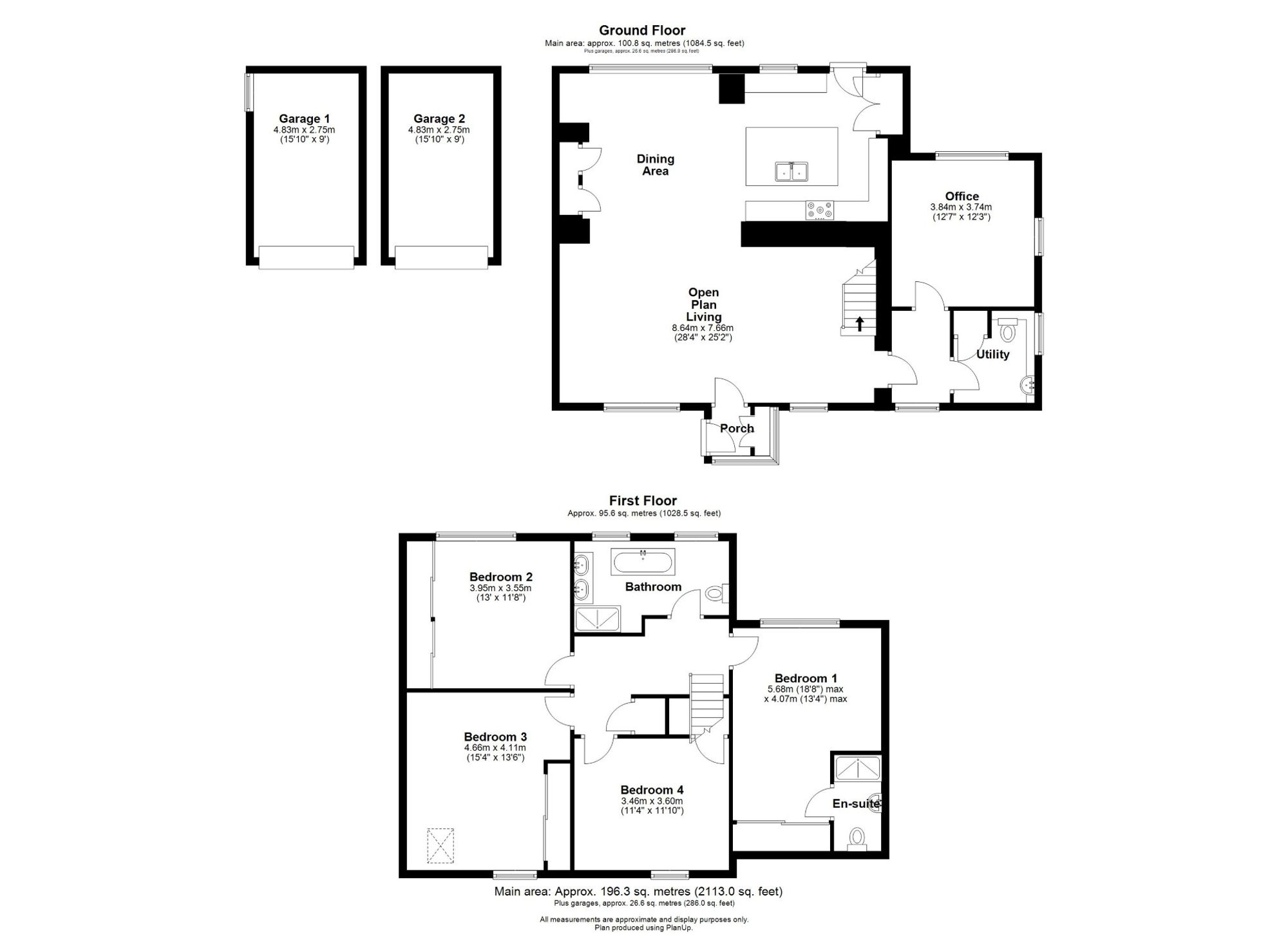 Externally, the property enjoys a private rear garden, ideal for outdoor dining and family use. To the front, there is driveway parking, in addition to two garages providing secure parking and useful storage space.