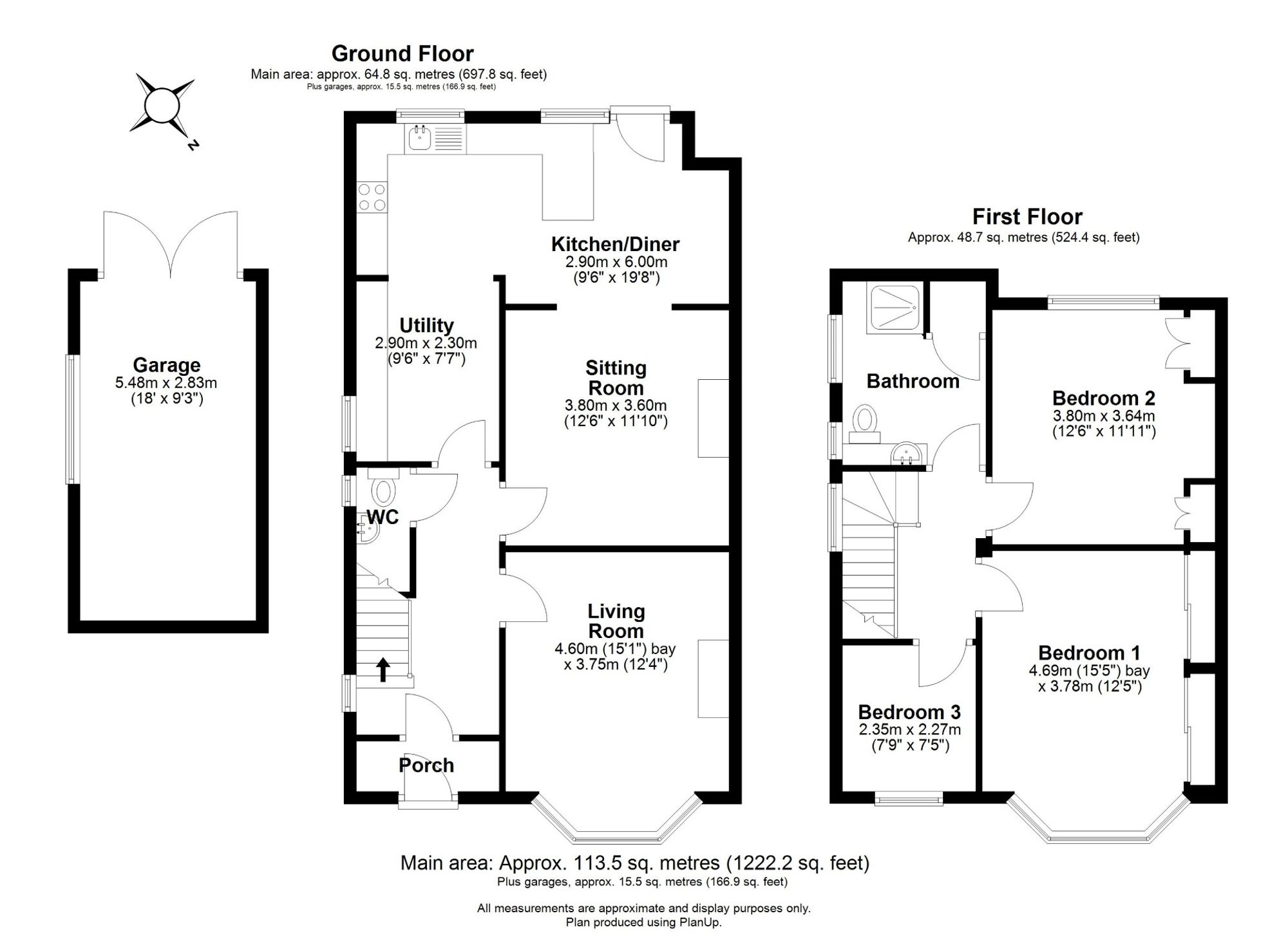 The property is set back from the road by a front lawn with side driveway wrapping around to the rear, leading to the garage. Stepping inside, a bright porch leads to a welcoming entrance hall with useful downstairs WC. To the front elevation, the cosy living room with bay window and feature fireplace provides a great space for family relaxation. To the rear, the lovely sitting room provides further hosting space, with elegant cornicing, open-plan to the kitchen/diner with ample cabinetry, and then to generously sized utility room.