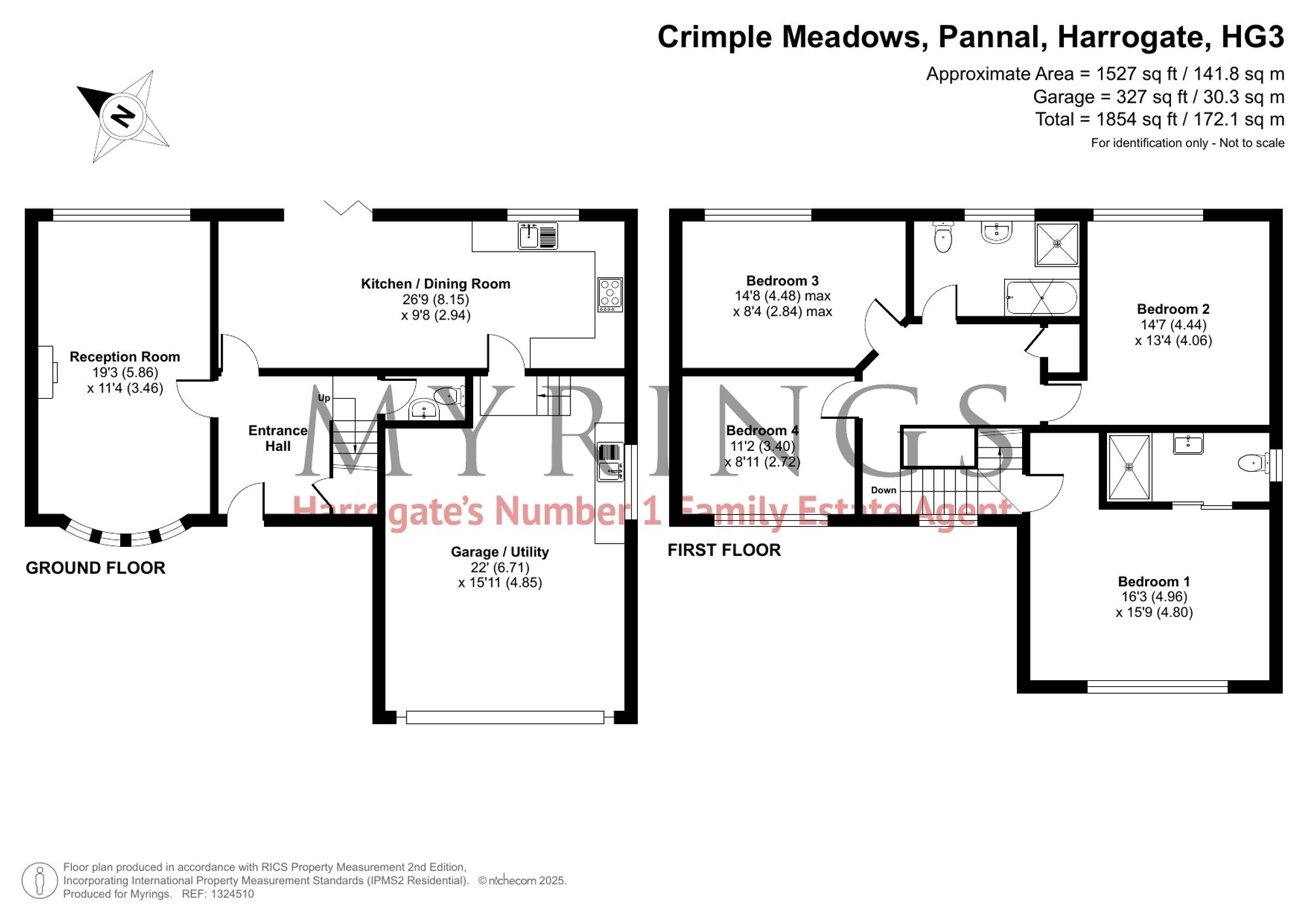 Upstairs, a spacious central landing leads to four generously sized double bedrooms, including a principal bedroom with a stylish en-suite shower room. A contemporary family bathroom completes the first floor, featuring a bathtub and a separate walk-in shower.