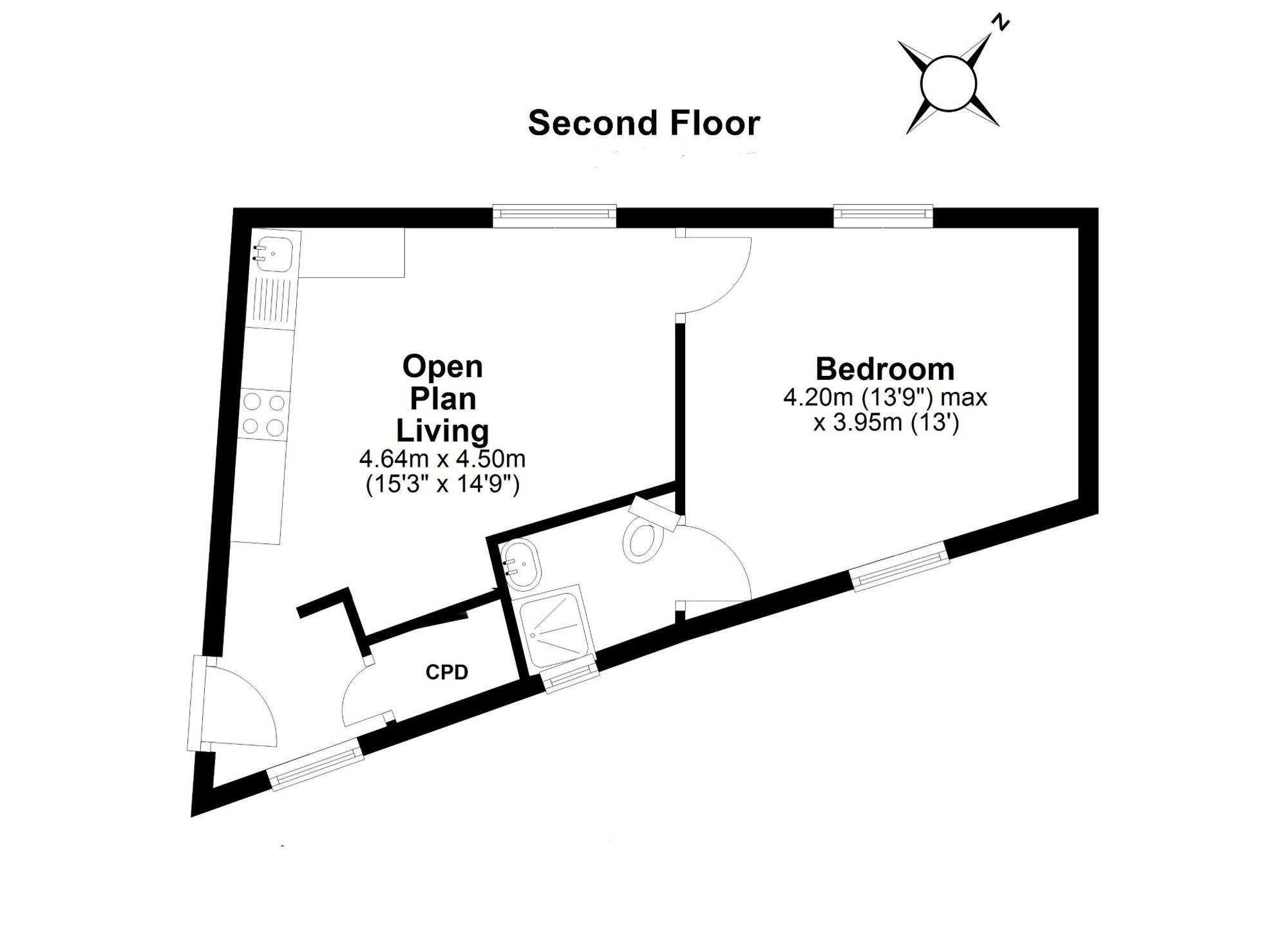 The double bedroom offers stunning views over the Valley Gardens, with twin contemporary wall light sconces flanking the bed. The apartment is complemented by a beautifully designed 3-piece Art Deco en-suite shower room featuring a rainfall shower and bespoke walnut vanity.