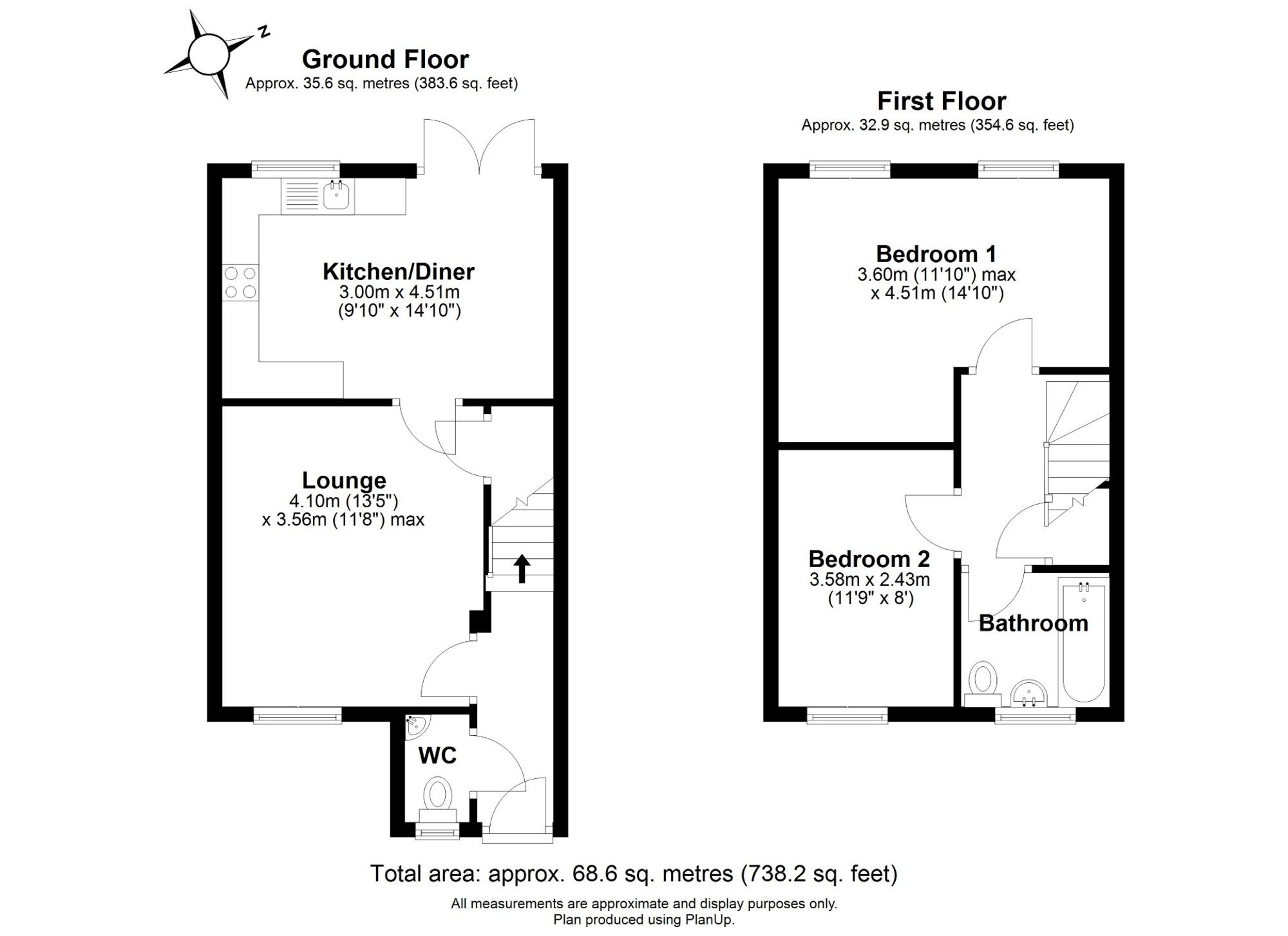 To the first floor are two bright and generously proportioned double bedrooms, served by a modern family bathroom fitted with a bath and contemporary suite.
