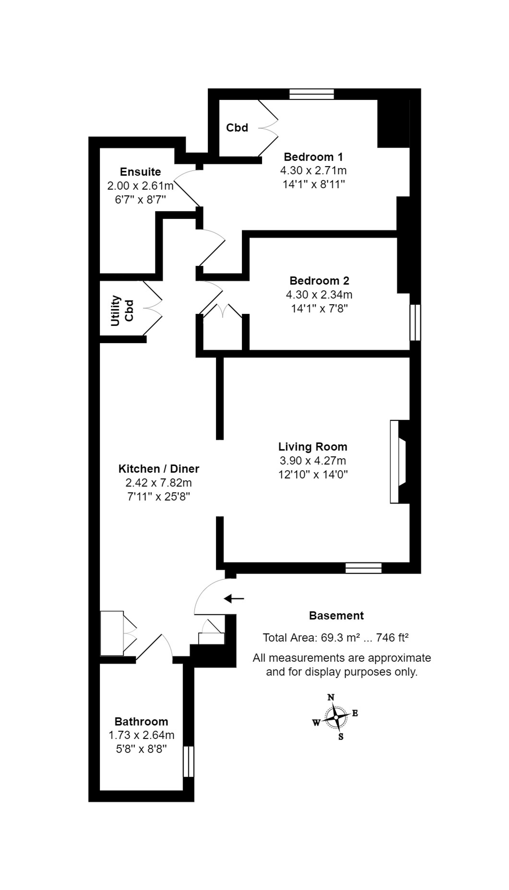 Both bedrooms are well-proportioned doubles with fitted storage. The principal bedroom benefits from a sleek en-suite shower room, fully tiled and enhanced by underfloor heating. The main shower room is equally luxurious — larger in size, fully tiled, and also featuring underfloor heating.