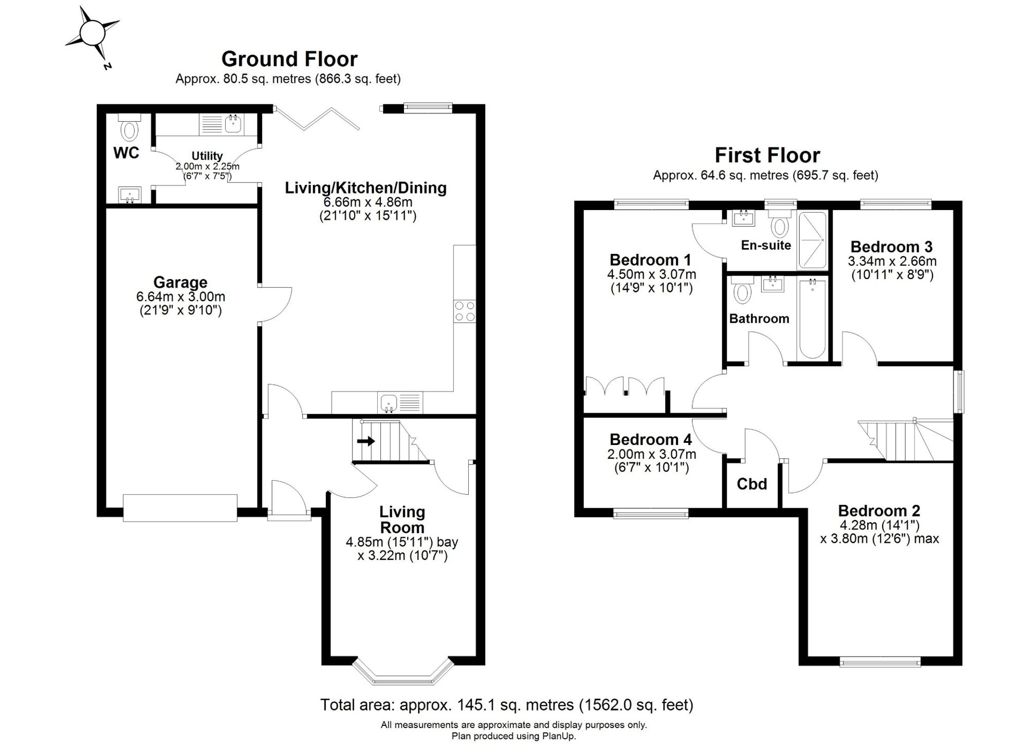 The first floor offers three well-proportioned double bedrooms, the principal bedroom benefiting from built-in wardrobes and a modern en-suite shower room. A fourth single bedroom offers flexibility as a home office or nursery. A stylish family bathroom with over-bath shower and contemporary tiling, and a useful landing storage cupboard complete the accommodation.