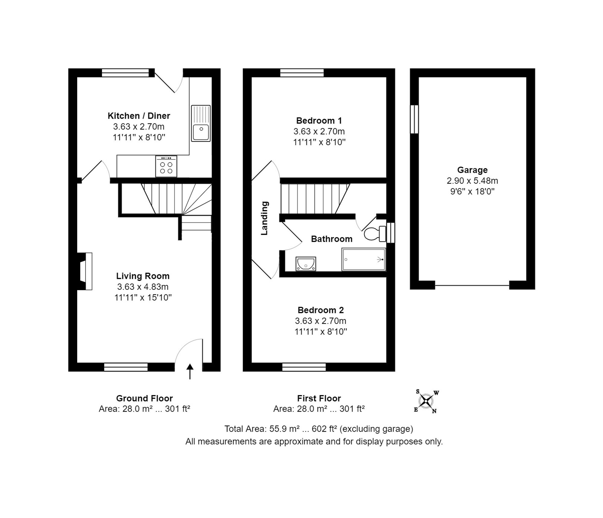 A modern two-bedroom semi-detached home, beautifully presented throughout and featuring a recently installed heating system & fitted breakfast kitchen with doors opening onto generous south-facing, enclosed rear gardens. The property also benefits from a side driveway and single garage and is ideally located close to local shops, a park, reputable schools, and a regular bus service providing easy access to the town centre.