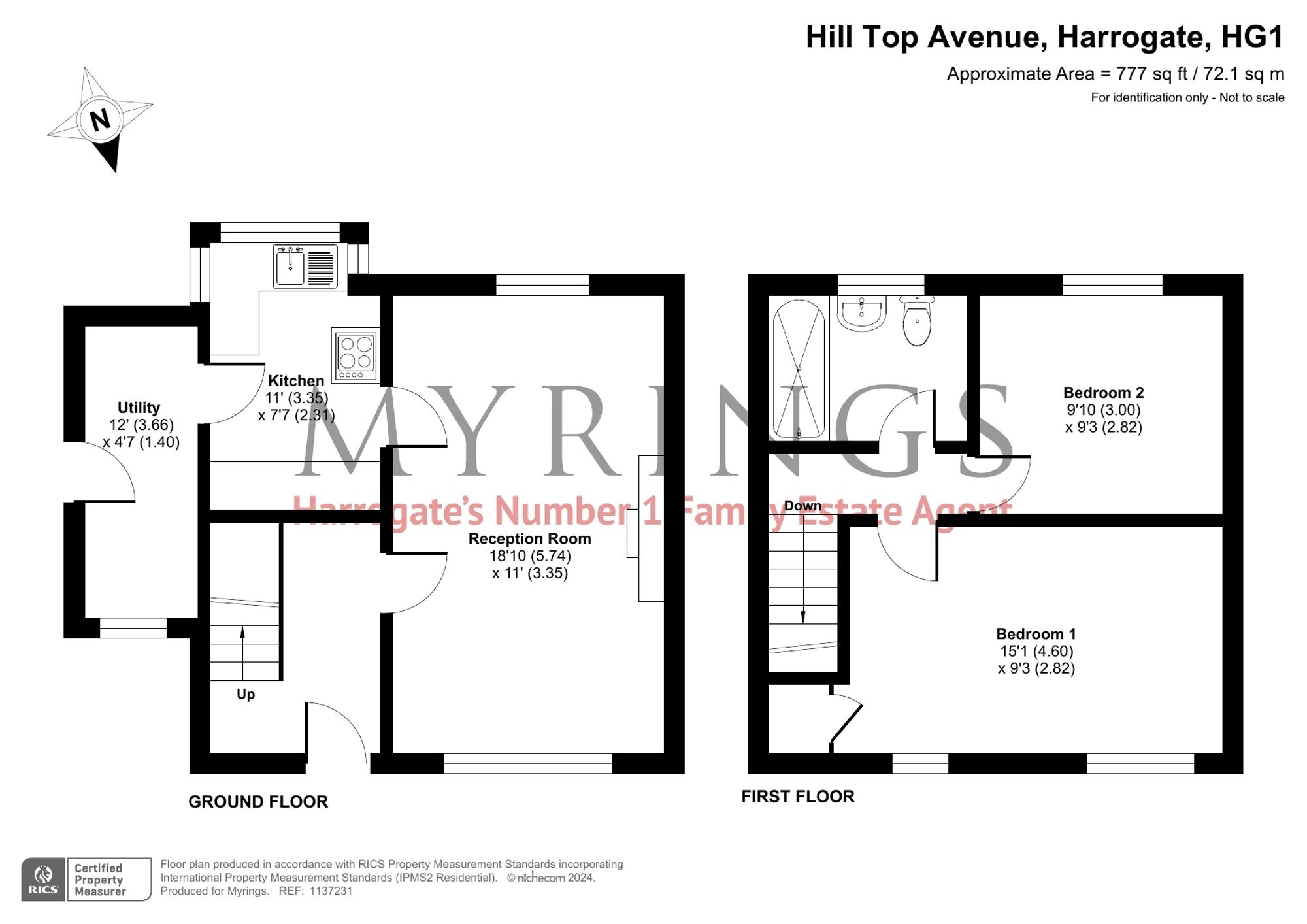 Fronted by a lawned garden with planted borders and a side driveway, the property opens into a spacious entrance hall. The naturally light living room is an excellent size, comfortably accommodating lounge and dining areas. Adjoining is a modern fitted kitchen, complemented by a separate utility room that provides a practical access point from the side of the house and out to the recently landscaped south facing garden, which features a smart flagged patio and lawned area ideal for children. To the first floor, the central landing leads to a contemporary house bathroom with an over-bath shower, and two well proportioned double bedrooms, the larger benefitting from a built-in cupboard.